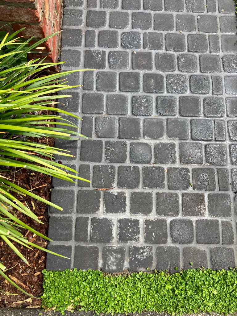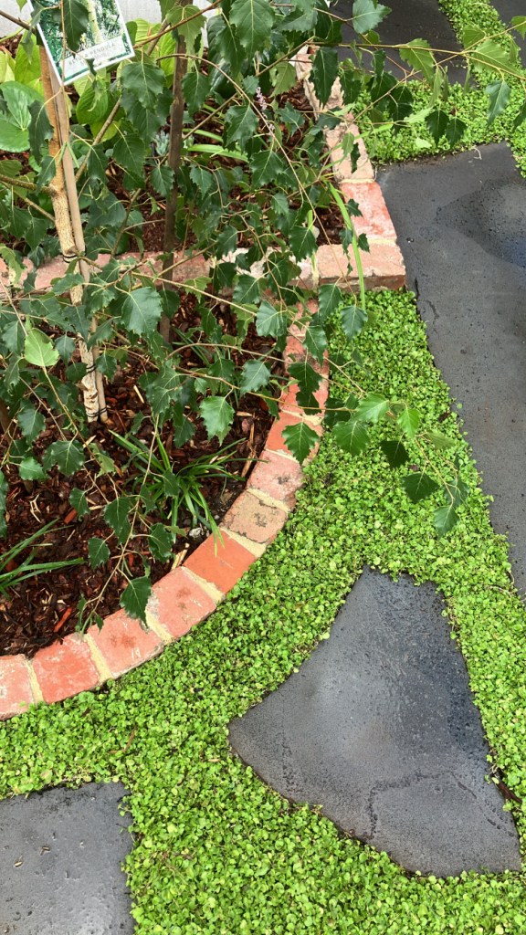 The Bamstone bluestone billets and cobblestones, quarried locally in Port Fairy, alongside the recycled red bricks tied the garden to the local area while breaking straight lines in the space.